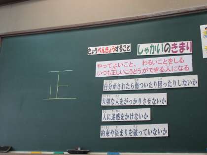 「一」度「止」まって考えると,「正」しい行いができることを教えていただき,子どもたちも真剣に話を聞いていました。
