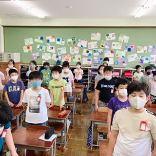 放送で校長先生や教頭先生のお話を聞きました。