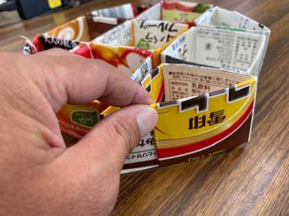 さて,2学期に向けて,牛乳パックの容器(1Lでも500mLでもけっこうです)を9つ集めておいていただきたいと思います。
