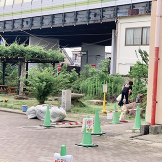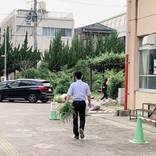 草刈りをしてくださっている用務員さんお二人