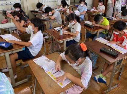新出漢字の練習。声を出して指書き,空書きして丁寧にドリルに書いていきました。