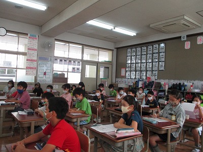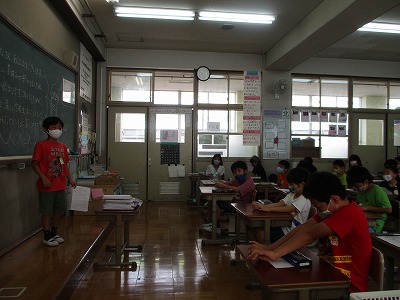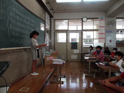 久しぶりの朝の会・・・・・。少し緊張気味の今日の日直さんでした。