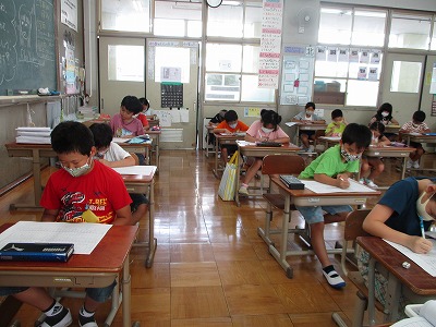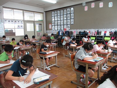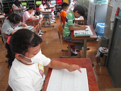 1学期に学んだ漢字すべてのテストをしました。夏休みの宿題でしっかり練習してきていましたね。合格するといいですね。