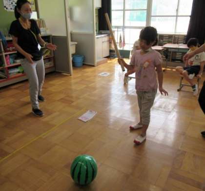 すいかに棒が当たった人や当たらなかった人がいました。