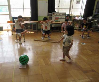 「惜しい」と当たらず悔しがっている人や,「やった」と上手に当たって喜んでいる人などがいました。みんなとても楽しんでいる様子が見られました。