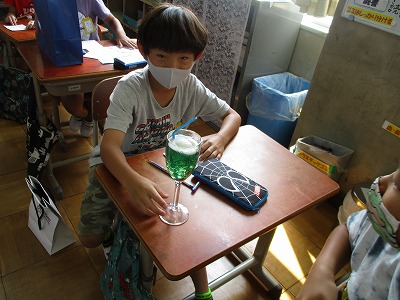 涼しげな「クリームソーダ」と「ログハウス」ですね!!