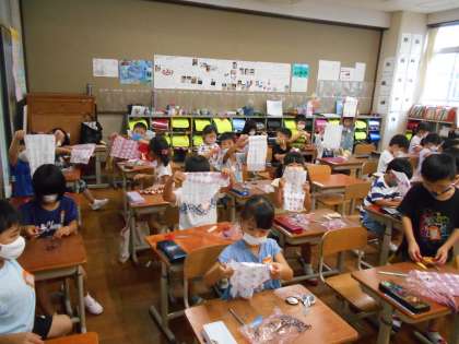 「こんな柄が出来たよ!」「きれいな柄!」「もう一枚染めたい!」「とても楽しいね。」