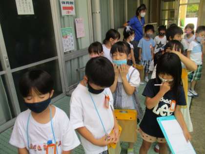 音楽科の学習では,学校の中で聴こえる音を探しに,校内を歩いて周りました。