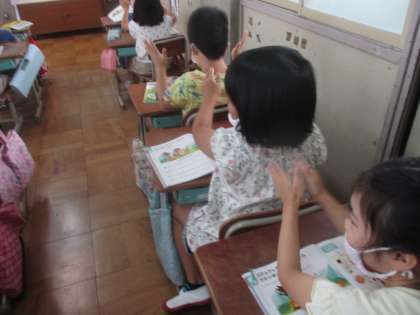 三拍子のリズムに合わせて,手を叩いたり