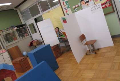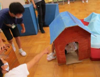 隠れていたのになかなか見つからず,鬼の様子が気になって覗いている人もいました。