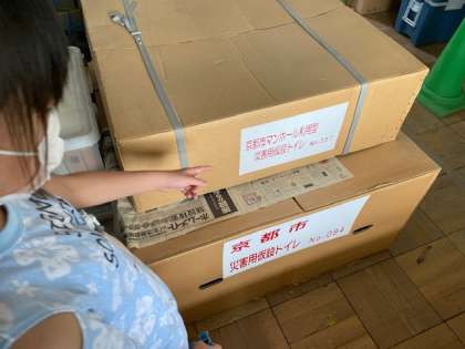 災害用仮設トイレや災害救助用毛布,災害用備蓄飲料水の写真を見てもらい,尋ねました。