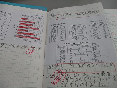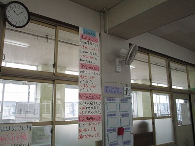 毎時間の学習の終わりには「ふりかえり」を書いています。感想を書くのではなく,1時間の学習の中で「わかったこと」や「学んだこと」などを書くようにしています。モデル文を見ながら,よりよいふりかえりを書くことができるようになりたいですね。