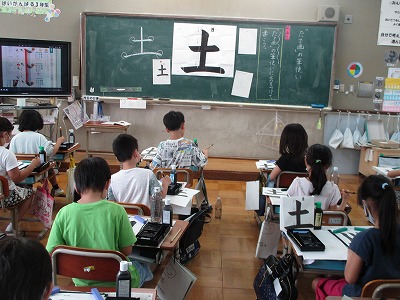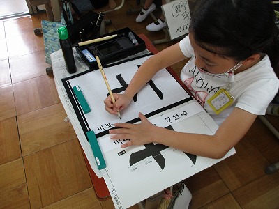 3年生になってから2回目の習字の学習をしました。緊張感を持って,たての筆使いに気を付けて書きました。