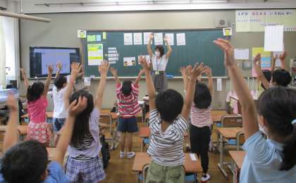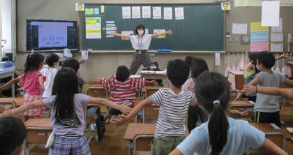「アップ」「ロング」「オン」などの表現も体を動かしながら学習していました。