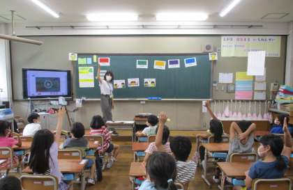 はじめての外国語の学習に朝からうきうきわくわくの1年生でした。