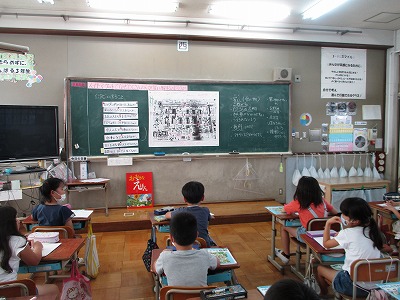 スーパーマーケットの絵地図や写真を見て,知りたいことや聞きたいことを考えました。