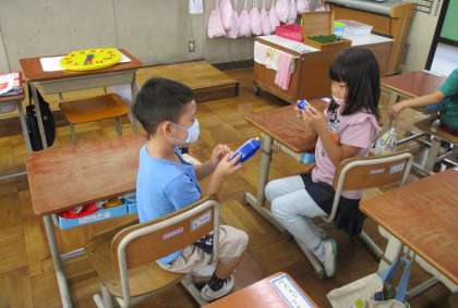 最後にペアで「時計の針をを8時に合わせましょう。」などと問題を出し合いました!