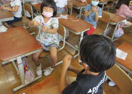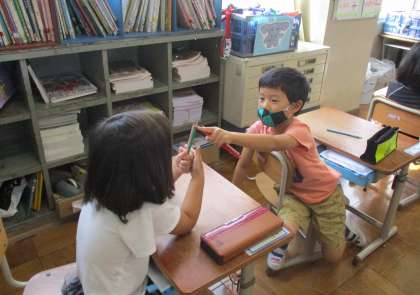 長さを比べるときは,端をそろえる,ぴんと伸ばす,比べるところを重ねるとよいことに気づけましたね!!