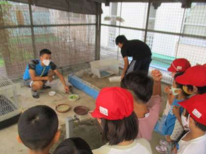 飼育委員のお兄さん,お姉さんが,お世話の仕方を教えてくれました。