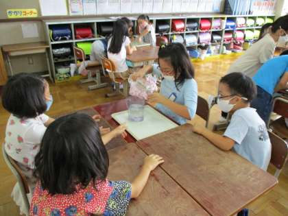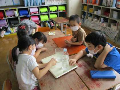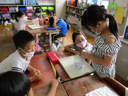 1Lは何dLなのかを実際にはかって確かめている様子です。