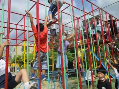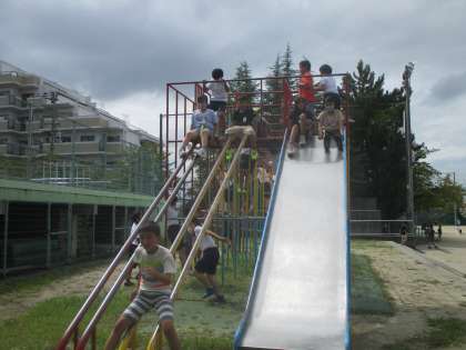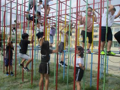 密を避けるため,遊具も学年ごとに使用できる日が決められています。今日は4年生が使用できる日でした。