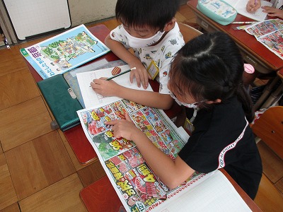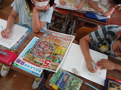 スーパーマーケットのチラシ広告から「産地調べ」をしました。品物は,日本の各地から届いているだけだなく,外国からも届いていることに気が付きました。