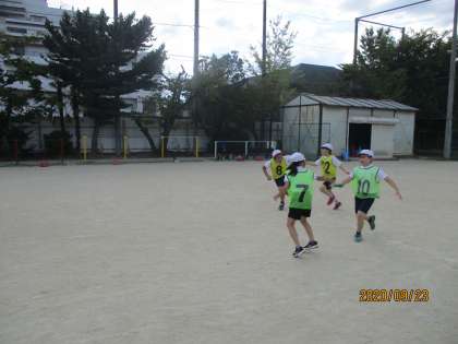 バトンパスの練習をしました。