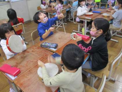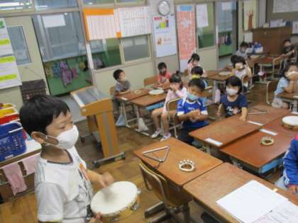 音楽科の学習は,「がっきと なかよく なろう」の学習をしています。