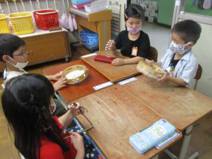自分のお気に入りの音を見つけて,楽しく楽器に親しんでいました。