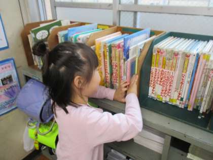 休み時間に,本棚の本を整頓している子を発見しました!!