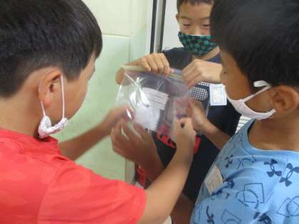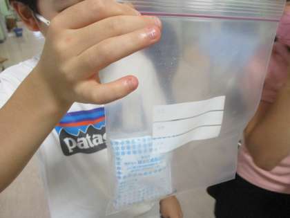 グループに分かれて,空気中に水は含まれているのかを,ジップロックと保冷剤を使って確かめました。