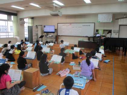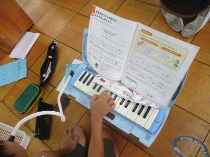 鍵盤ハーモニカや手拍子の音を合わせて学習します。