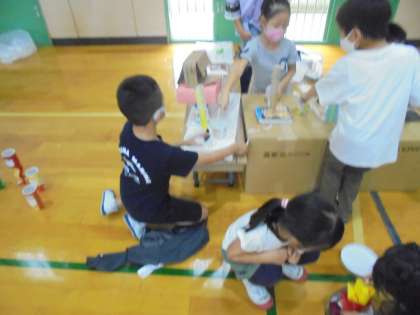 生活科の「あそんで ためして くふうして」の発表会に1年生を招待しました。身近な材料を使って何が出来るかを考え,自分たちが遊びながら,「もっとこうした方がいい」「こんなことをしたらもっと楽しくなる」と考え,工夫してきました。発表会では,「1年生に分かりやすいように」という視点で遊び方を考えることが出来ました。