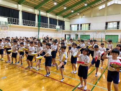 クラスから代表の子どもたちに演技してもらい,それを見てまたみんなで練習しました。