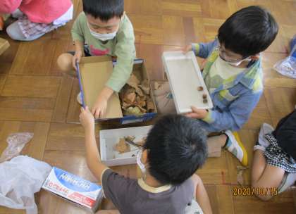 見つけた秋のお宝でどんなことができるかを考えて遊びました。