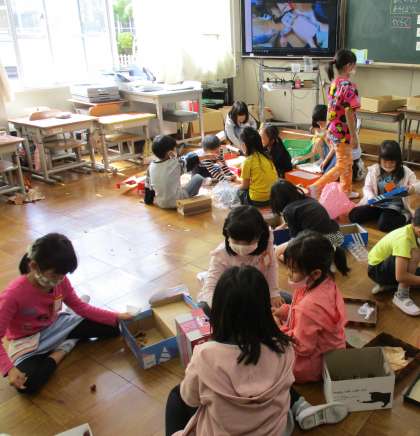 「大きな箱があればなぁ。」「何かで階段を作って使いたいなぁ。」と次の時間に使いたいものも考えていました。