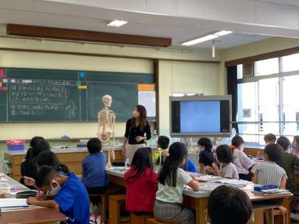 この日は,子どもたちに大人気の「ほねほねくん」が登場して,骨が全身にあることや関節のところで体を曲げていることを確かめました。