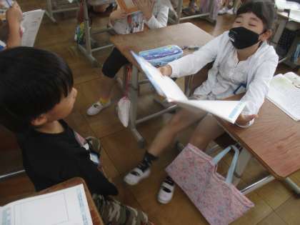 道徳の学習です。自分の意見をとなりの人と交流しました。