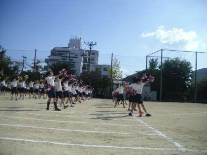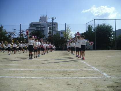 ダンスでは,キラキラのポンポンを持って,リズミカルに踊りました。「がむしゃら行進曲」に合わせてキレのあるダンスを披露することができました。