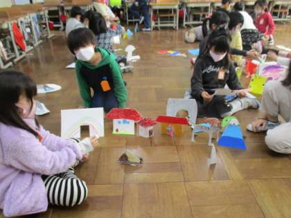 図画工作「おってたてたら」の学習では,鑑賞の学習をしました。