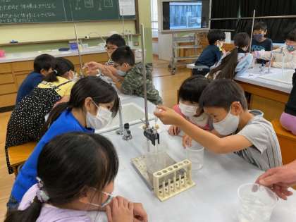 水を温めたり冷やしたりして,体積がどうなるのかを実験しました。