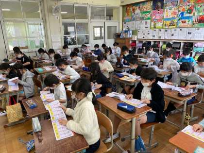 2学期に習う漢字を音読みと訓読みで早く読む,「漢字読みよみチャレンジ」に取り組んでいます。