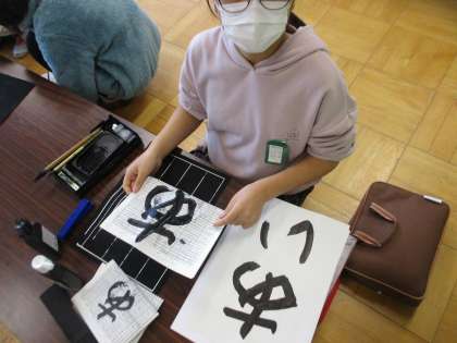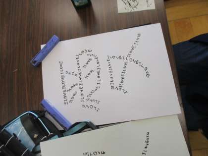 楽しんで「愛」と言う字を描きました