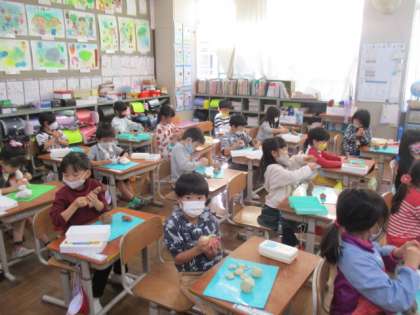 図画工作の時間は,「いっしょに おさんぽ」の学習をしました。