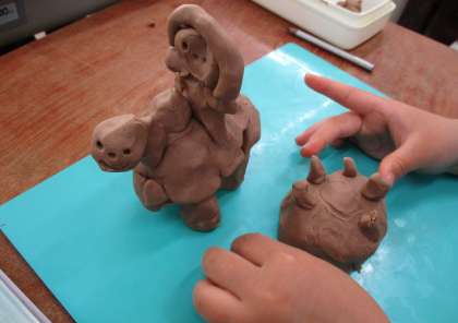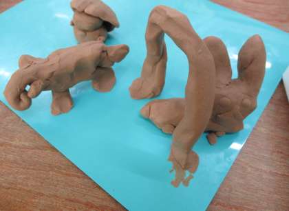 いっしょにお散歩をしたい動物などを粘土でつくりました。