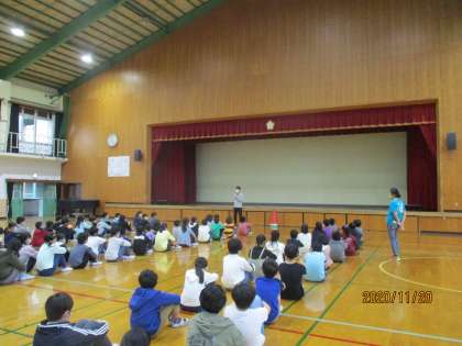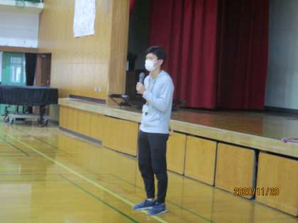 学年集会でお話しました。
