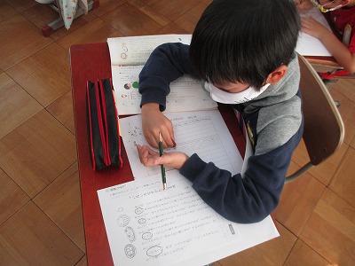 自分が調べた材料がどんな工夫で,どんな姿に変身するのかを「リーフレット」にまとめていきます。今日は,下書きをしました。