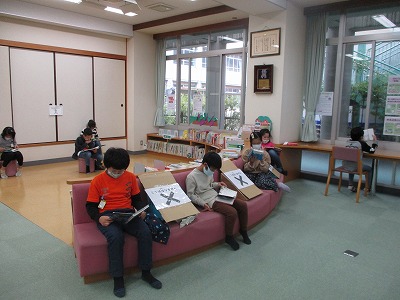 図書室で本を借り,読書をしています。借りる時も読むときも図書室でのルールをしっかり守っています。