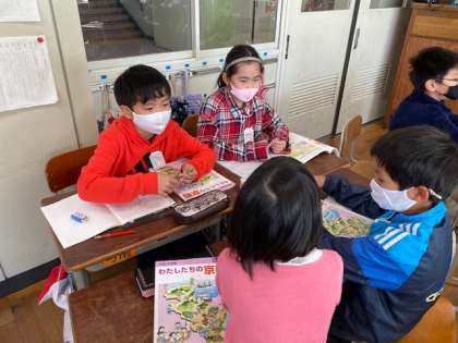 初めはグループで,次に代表の人に出てきてもらい,話し合いの様子をみんなで見ました。