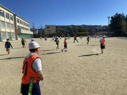 体育科『タグラグビー』の学習が始まりました。タグをつけて,しっぽ取りゲームをしていました!『寒い寒い』とみんな言っていましたが,最後には体がポカポカしていました!